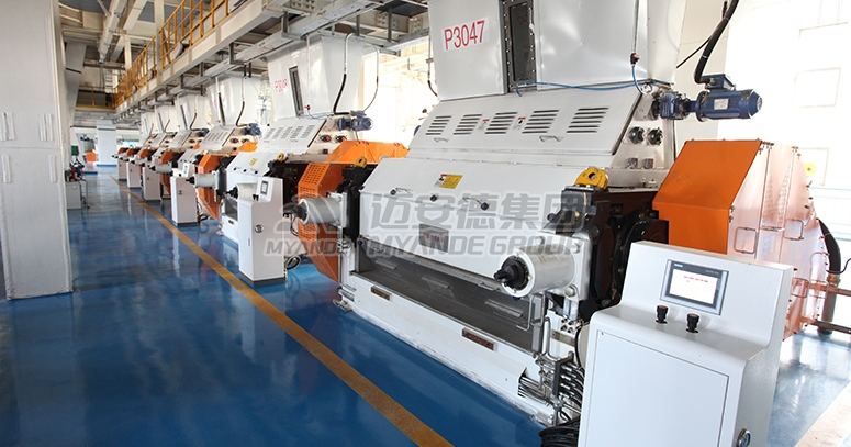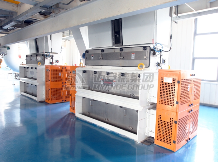 配套邁安德高效的MYPG系列軋胚機,可將前段處理過的油料制成優質的胚片,胚片厚度一般在0.3-0.35mm,韌性好、粉末度低,可充分保證后續浸出工段較低的殘油和溶劑消耗。