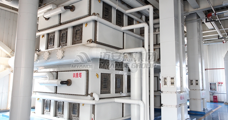 調質作為油料生產中的重要環節,可以調節油料的水分溫度、提高其中油脂的流動性,便于后續取油。流動性好的油料,例如大豆、菜籽可采用邁安德高效的調質塔來處理,熱源可采用車間回收的熱水或者廢水,降低客戶能耗支出。流動性不好的油料可采用臥式滾筒軟化鍋或立式蒸炒鍋來處理。